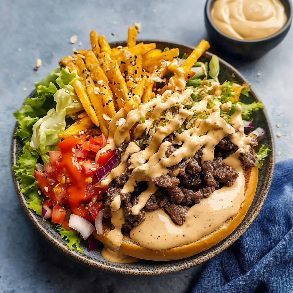 Burger in a Bowl is a deliciously satisfying meal that combines the mouthwatering flavors of a classic burger with fresh, nutritious ingredients. Perfect for those craving comfort food without the heaviness, this bowl features seasoned ground beef or turkey, crisp veggies, and creamy avocado, all drizzled with your favorite dressing. Ideal for quick weeknight dinners or meal prep, this versatile dish promises to impress family and friends alike.