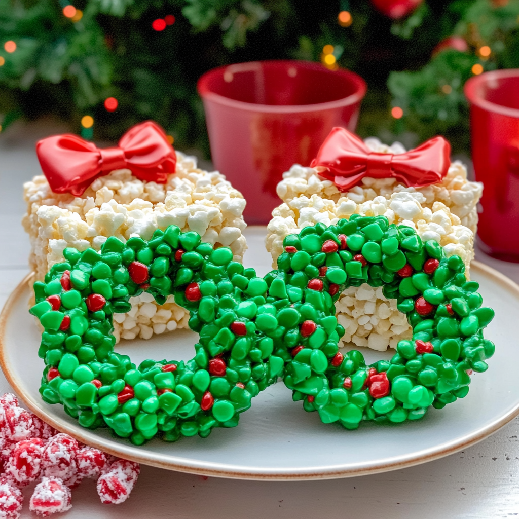 Keywords: Customize your wreaths with different colored sprinkles or use chocolate candies as ornaments. For gluten-free options, substitute rice cereal with gluten-free varieties.