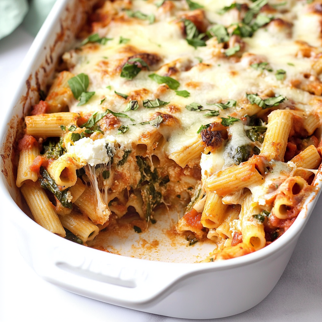 Cheesy Baked Ziti with Ricotta & Spinach is the ultimate comfort food, blending creamy ricotta, tender ziti, and vibrant spinach into a deliciously baked dish. Perfect for family dinners or gatherings, this easy recipe offers a delightful mix of flavors and textures that will leave everyone asking for seconds. With its golden, cheesy top and rich flavors, this ziti is sure to become a household favorite.