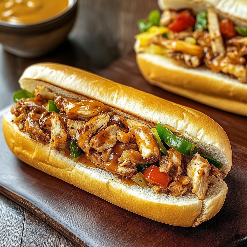 Savor the incredible flavors of Chicken Cheese Steak Sandwiches, featuring tender chicken, melted provolone cheese, and vibrant grilled vegetables. This easy-to-make dish is perfect for weeknight dinners or casual gatherings, delivering a satisfying meal that everyone will love. Indulge in each cheesy bite that promises to elevate your dining experience!