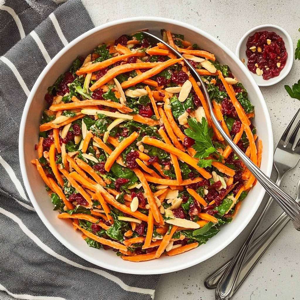 This slaw combines crunchy kale with sweet-tart cranberries, creating an exciting flavor contrast that elevates any meal. The vibrant colors make it visually appealing while delivering essential nutrients.