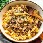 Absolutely! You can prepare the stroganoff sauce ahead of time and store it separately from the noodles. When you’re ready to serve, simply reheat your sauce while boiling fresh egg noodles or reheat them together on low heat until warmed through.