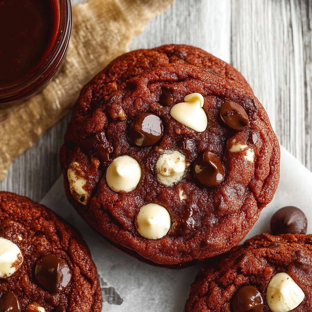 Indulge in the delightful world of Red Velvet Chocolate Chip Cookies, where each bite combines the rich flavor of cocoa and a hint of sweetness, wrapped in a striking crimson hue. These cookies are soft, chewy, and utterly irresistible, perfect for any occasion—from cozy nights at home to celebrations with friends. Bake a batch today and discover why these cookies are a beloved favorite!