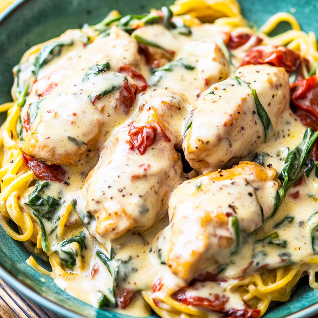 The aroma of Slow Cooker Creamy Tuscan Chicken with Spinach and Tomatoes wafts through your home, promising a culinary experience that dances on your taste buds. Picture tender chicken swimming in a luscious, creamy sauce, kissed by the warmth of sun-dried tomatoes and the vibrant green of fresh spinach. One bite, and you’ll feel like you’ve been transported to an Italian villa, indulging in the rich flavors of the Mediterranean.