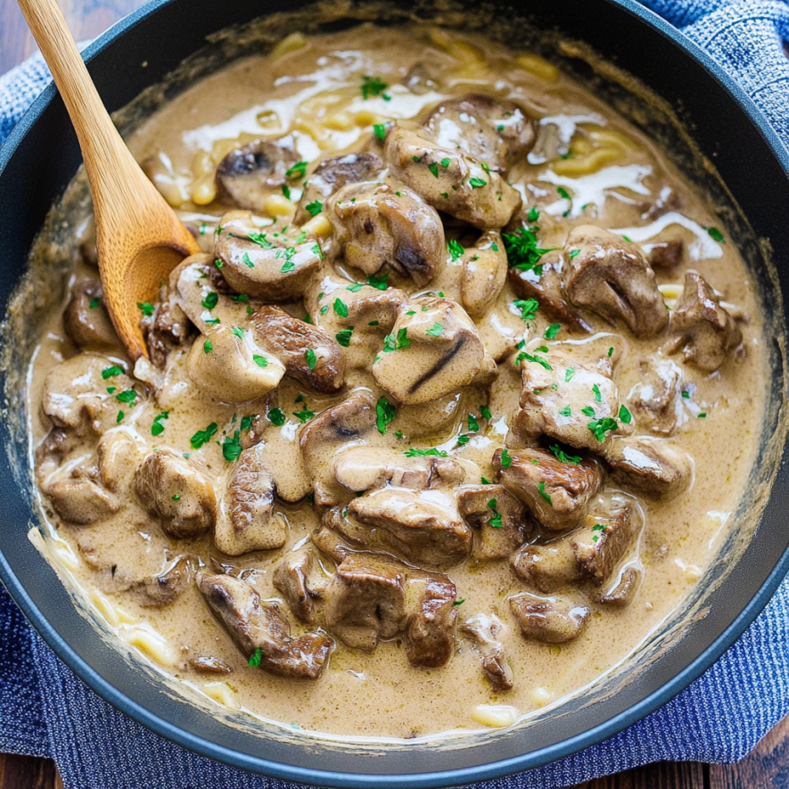 Start by searing the beef in a hot skillet to lock in flavor. While it cooks, sauté onions and mushrooms until soft. Then mix them all together with a rich sauce for ultimate taste.