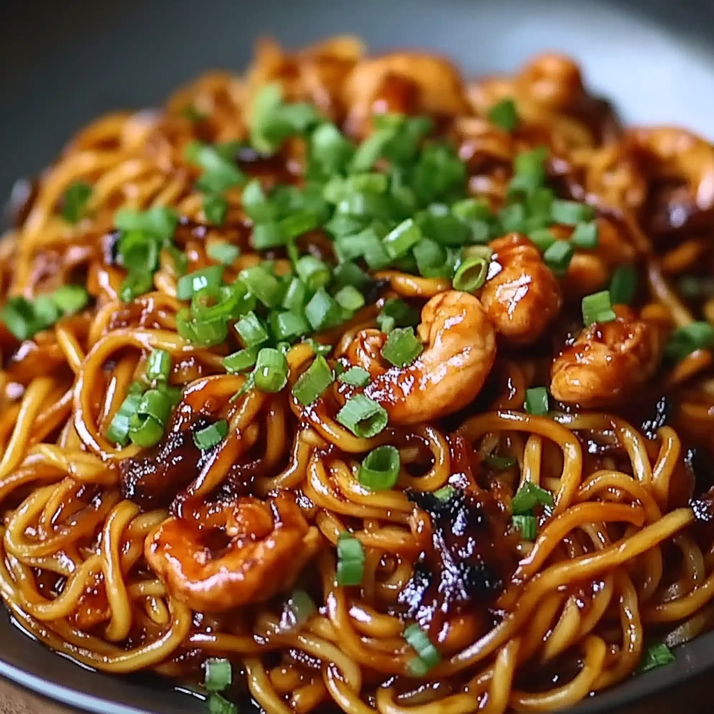Irresistible Sticky Garlic Chicken Noodles Recipe