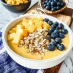 Experience a burst of tropical flavors with this Mango Coconut Smoothie Bowl! Combining ripe, sweet mangoes with creamy coconut milk and a hint of banana, this vibrant bowl is not just a breakfast; it’s a journey to paradise in every spoonful. Topped with your favorite fruits and crunchy granola, it’s perfect for a refreshing start to your day or a delightful afternoon treat.